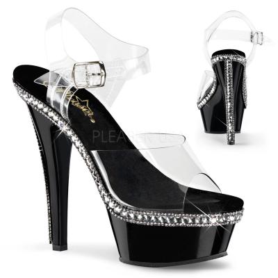 6 インチ (15.2 cm) ヒール、1 3/4 インチ (4.5 cm) プラットフォーム アンクルス トラップのぞき見つま先サンダル プラットフォーム ・ ヒールにラインス トーン装飾を備え(PF Ankle Strap Sandal w/RS Embellishment)