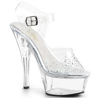 6 インチ (15.2 cm) ヒール、1 3/4 インチ (4.5 cm) プラットフォーム アンクルス トラップのぞき見つま先サンダル マルチ サイズ AB ラインス トーン、魔性の女の特徴