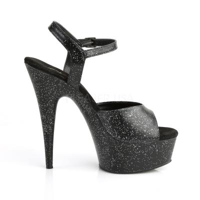 6 インチ (15.2 cm) ヒール、1 3/4 インチ (4.5 cm) プラットフォーム アンクルス トラップ サンダル全体上部・ プラットフォームのミニ虹色のきらめきを搭載(PF Ankle Strap Sandal w/Mini Glitter)
