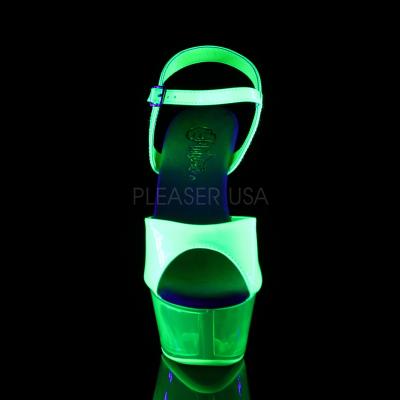 6 インチ (15.2 cm) ヒール、1 3/4 インチ (4.5 cm) プラットフォーム アンクルス トラップ サンダル全体上部, 下部とアウトソール/Toplift ネオン紫外線反応の特徴
