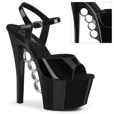 ◆ 7 "" (178mm) ヒール、2 3/4 "" (70mm) プラットフォーム下面にクロムメッキブラスナックルをあしらったアンクルストラップサンダル ◆