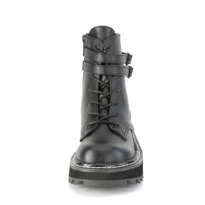 1 1/4""(32mm)プラットフォームレースアップフロントアンクルブーツw/ダブルバックルアンクルストラップ、内側ジップクロージャ