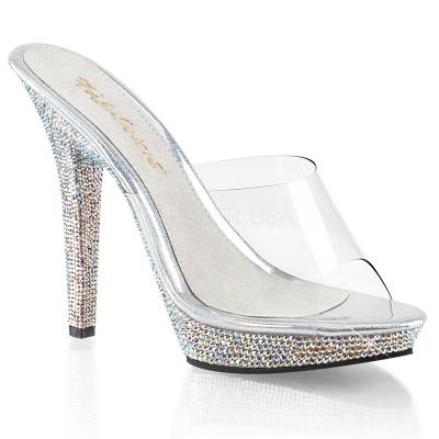 5 インチ (12.7 cm) ヒール, 3/4 インチ (1.9 cm) プラットフォーム プラットフォーム全体の底にちりばめられたラインス トーンが特徴をスライドします。(PF Slide)