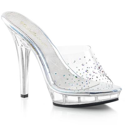 5 インチ (12.7 cm) ヒール、マルチを搭載する 3/4 インチ (1.9 cm) プラットフォームのスライド サイズ ヴァンプのラインス トーン(PF Slide w/ RS Scatter)