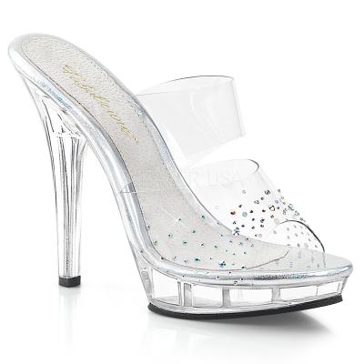 5 インチ (12.7 cm) ヒール、3/4 インチ (1.9 cm) プラットフォーム 2 つバンド スライド搭載マルチ サイズ ヴァンプのラインス トーン
