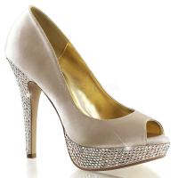 5 インチ (12.7 cm) 1"(2.5 cm) プラットフォームのぞき見つま先ポンプ w/ラインス トーンの装飾プラットフォームとヒールのかかと。