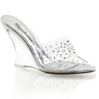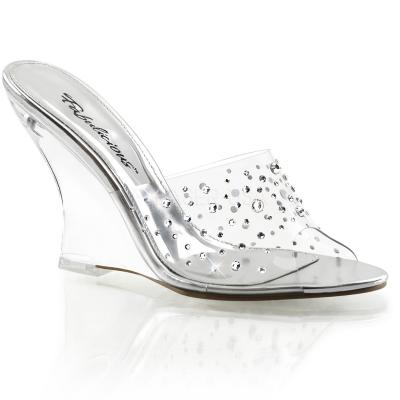 4 インチ (10.2 cm) ヒール ウェッジ スライド サンダル ヴァンプにちりばめられたラインス トーンの特徴(Wedge Slide w/Rhinestone Vamp)