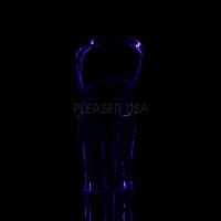 7 インチ (178 mm) かかと、2 3/4 インチ (70 mm) カットされたプラットフォーム アンクルス トラップ サンダル プラットフォームでブラック ライト反応の猫猫の特徴(Cut-Out PF Ankle Strap Sandal w/ Cat)
