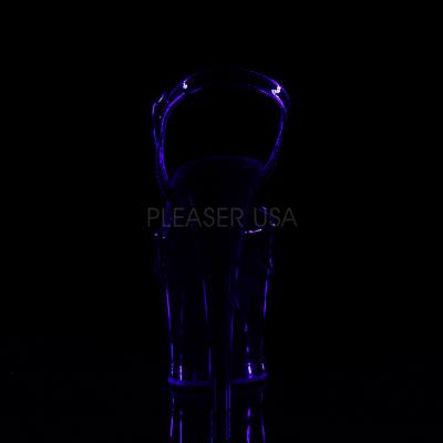 7 インチ (178 mm) かかと、2 3/4 インチ (70 mm) カットされたプラットフォーム アンクルス トラップ サンダル プラットフォームでブラック ライト反応の猫猫の特徴