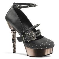 5 1/2 インチ (14 cm) 指の骨の残渣、1 1/2 インチ (3.8 cm) PF ダブル ストラップ メアリー ジェーン ポンプ ピューター クローム メッキ下部とスカル バックル詳細のスパイクは、スタッド