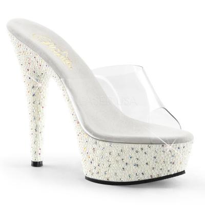 6"(15.2cm) かかと、1 3/4"(4.5cm) PF スライド全体の底を完全に備えちりばめられた w/ミニ パール ・ ラインス トーン