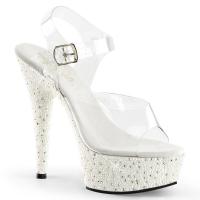 6"(15.2cm) かかと、1 3/4"(4.5cm) PF アンクルス トラップ サンダル全体の底を完全に備えちりばめられた w/ミニ パール ・ ラインス トーン