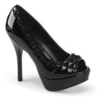 5 1/4"(13.3 cm) ヒール、1 1/4 インチ (3.2 cm) プラットフォームのぞき見つま先のポンプ ヴァンプ、先の尖ったスタッド、織りエプロン ・配管詳細全室十字 D リング レース(PF Peep Toe Pump w/Lace & Spikes Detail)