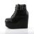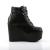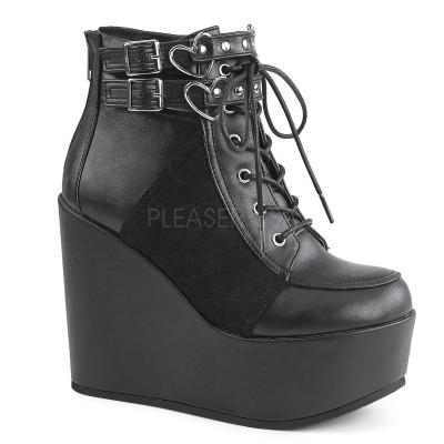 5"(12.7 cm) ウェッジ プラットフォーム レースアップ フロント足首二重座屈足首ストラップ、ハート刺繍パネル中心リングの詳細については、背面の金属のジッパーとブートします。(Wedge Platform Lace-Up Front Ankle Boot, Back Metal Zip)