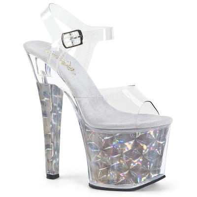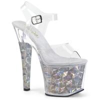 7 インチ (178 mm) かかと、3 1/4 (83 mm) プラットフォーム足首ストラップ サンダル特徴六角ホログラムかかと・ プラットフォーム底