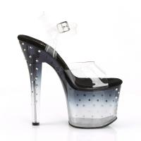 7 インチ (178 mm) かかと、かかとと染められたプラットフォームの外側にちりばめたムーティ サイズのラインス トーンを備えた 3 1/4 (83 mm) プラットフォーム アンクルス トラップ サンダル(PF Ankle Strap Sandal)