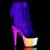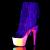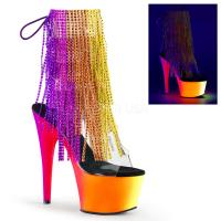 7 インチ (17.8 cm) ヒール、2 3/4 インチ (7 cm) プラットフォーム オープンつま先またはかかとバックレース アップ足首ブート 4 層クロムメッキを備え模擬色とりどりラインス トーン フリンジと UV ブラック ライト反応色とりどりのプラットフォーム、ジッパー閉鎖、多色/ネオンの Mu 中
