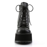 3 3/4"(95 mm) かかと、背中・ スパイダー Web 刺繍の詳細、内側ジッパーでスパイダー Web 魅力と 2 1/4 インチ (57 mm) プラットフォーム レースアップ フロント足首ブート