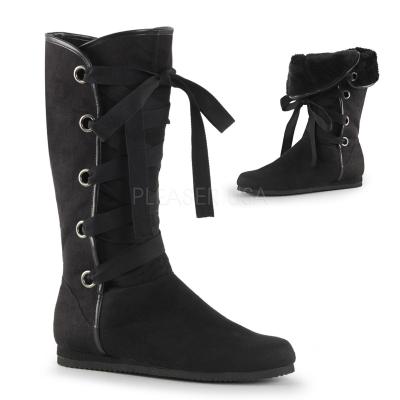 スプリット シャフト、折り畳み式のカフ、偽ものの毛皮の裏地を備えフロント リボン ストラップ アップふくらはぎルネッサンス ブート(*Front Ribbon Strap-Up Mid-Calf Renaissance Boot)