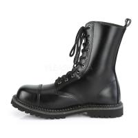 ◆ Demonia 10 アイレット・ユニセックスレザースティールトゥレースアップアンクルブーツ、ラバーソール ◆