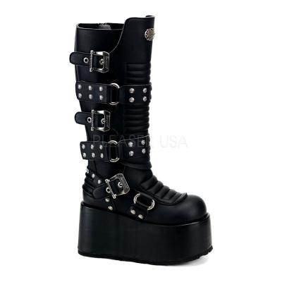 完全内部サイド ジッパー(P/F Goth Punk Blk PU Knee BT W/ 5 Straps Studs & Zipper)