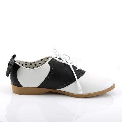 3/4 インチ (1.9 cm) ヒール、フロント編み上げバック リボン付きのサドルの靴(Heel, Front Lace Up Saddle Shoes)