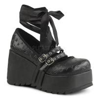 ◆ 3 1/2 インチ (8.9 cm) プラットフォーム星エンボス レースのリボンの周りラップとダブル紐で縛られるメアリー ・ ジェーン ◆