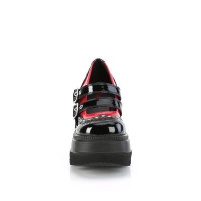 4 1/2"(114mm)ウェッジプラットフォームダブルバックルストラップウィングチップメリージェーンシルバートーンフラットラウンドスタッズバンプとヒール(Wedge PF Double Strap Maryjane)