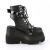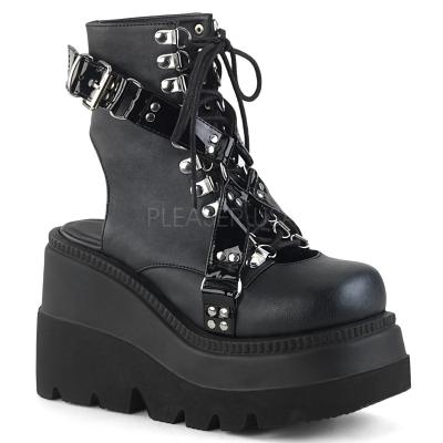 4 1/2 インチ (114 mm) ウェッジ プラットフォーム オープン バック編み上げ足首ブート スタッズ付きの調節可能な馬具・ アウトソールの深い溝を備え(Wedge Platform Open Back Lace-Up Ankle Boot)