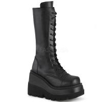 4 1/2 インチ (114 mm) ウェッジ プラットフォーム レースアップ フロントふくらはぎブーツ、フルレングス ジッパー閉鎖中(Wedge PF Lace-Up Mid-Calf Boot, Side Zip)