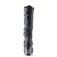 3 1/2 インチ (8.9 cm) ヒールのクローム、1 1/2 インチ (3.8 cm) プラットフォーム マルチス トラップ スタッズ付き膝ブート、完全内側ジッパーの成形