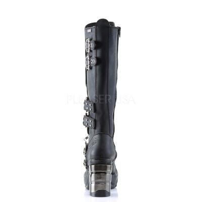 3 1/2 インチ (8.9 cm) ヒールのクローム、1 1/2 インチ (3.8 cm) プラットフォーム マルチス トラップ スタッズ付き膝ブート、完全内側ジッパーの成形(Molded PF Knee Boot)
