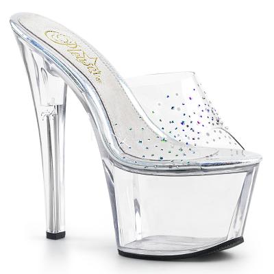 7 インチ (17.8 cm) ヒール、2 3/4 インチ (7 cm) プラットフォーム スライド マルチ サイズ AB ラインス トーン、魔性の女の特徴(PF Slide W/AB RS)
