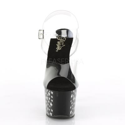 7 インチ (178 mm) プラットフォーム底の内側・外側の両側に星のヒール、2 3/4 インチ (70 mm) プラットフォーム アンクルス トラップ サンダル クロムの特徴(PF Ankle Strap Sandal w/ Chrome Print)