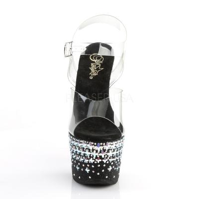 ◆ 7 インチ (17.8 cm) ヒール、2 3/4 インチ (7 cm) プラットフォーム アンクルス トラップ サンダル AB ラインス トーンを備えたプラットフォーム上交差します。 ◆