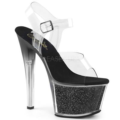 プラットフォームの下で挿入は、7 インチ (178 mm) かかと、きらめきを備えた彩色かかと w/2 3/4 インチ (70 mm) プラットフォーム アンクルス トラップ サンダル(PF Ankle Strap Sandal w/ Tinted Heel)