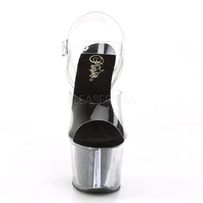 プラットフォームの下で挿入は、7 インチ (178 mm) かかと、きらめきを備えた彩色かかと w/2 3/4 インチ (70 mm) プラットフォーム アンクルス トラップ サンダル(PF Ankle Strap Sandal w/ Tinted Heel)