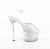 7インチ(178mm)ヒール、2 3/4インチ(70mm)プラットフォームアンクルストラップサンダル(丸みを帯びて滑らかなエッジ、透明で柔らかいTPUアッパー、シルバーラインストーンフィッシュネット生地オーバーレイ、シミュレートラインストーン充填プラットフォーム)。この「TPUプレミアム」スタイルには、交換可能な同色インソールとクリアなプラットフォームプロテクターが付属しています。