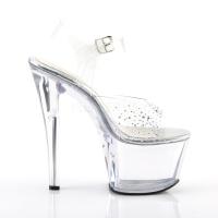 7 インチ (17.8 cm) ヒール、2 3/4 インチ (7 cm) プラットフォーム アンクルス トラップ サンダル マルチ サイズ AB ラインス トーン、魔性の女の特徴(PF Ankle Strap Sandal W/AB RS)