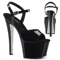 7 インチ (178 mm) かかとのプラットフォーム下にコントラスト ラインス トーン w/2 3/4 インチ (70 mm) プラットフォーム アンクルス トラップ サンダル(PF Ankle Strap Sandal)
