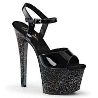 7 インチ (17.8 cm) ヒール、2 3/4 インチ (7 cm) プラットフォーム アンクルス トラップ サンダル全体の底上ミニ虹色キラキラの特徴(PF Ankle Strap Sandal w/Mini Glitter)