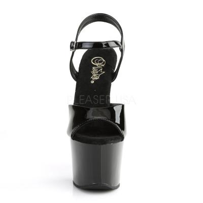 7 インチ (17.8 cm) ヒール、2 3/4 インチ (7 cm) プラットフォーム アンクルス トラップ サンダル「セクシー」かかとの裏をラインス トーンでの単語の特徴(PF Ankle Strap Sandal)