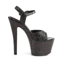 7 インチ (17.8 cm) ヒール、2 3/4 インチ (7 cm) キラキラ アッパーの一致するプラットフォーム アンクルス トラップ サンダル ・ プラットフォーム(PF Ankle Strap Sandal)