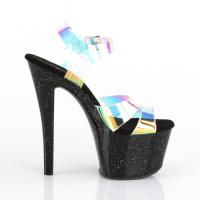 7 インチ (178 mm) かかと、2 3/4 インチ (70 mm) プラットフォーム アンクルス トラップ サンダル プラットフォーム全体の下にミニ虹色のきらめきを搭載(PF Ankle Strap Sandal w/ Mini Gltr Bottom)