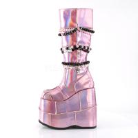 7 インチ (178 mm) プラットフォーム ニーハイ パッチ デザイン上・ ラウンド、ハート、特色を起動し、「Demonia カルト」楷書 w/スカル ビーズ混入シャフト ・様々 なぶら下がり魅力にハート リングを金属ジッパー閉鎖中の詳細