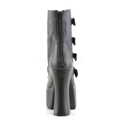 4 3/4"(12.1 cm) 分厚いかかと、2 インチ (5.1 cm) プラットフォーム フロント分割足首ブート弓・ ピラミッド スタッズ、スカラップ ディテール付きマルチ ストラップを備えたバック Zip 閉鎖