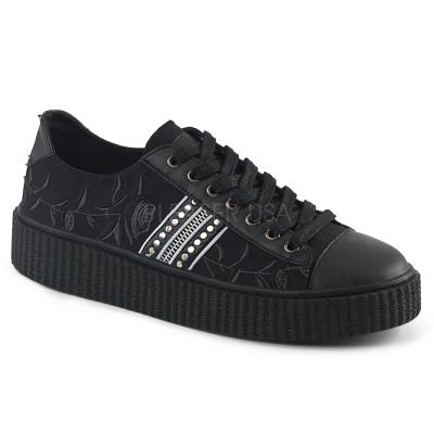 1 1/2 インチ (38 mm) スタッドとファスナーの w/ヴァンプのローズ刺繍を備えプラットフォーム ゴム唯一低上部ラウンドつま先レースアップ フロント クリーパー スニーカー側面をトリムします。