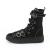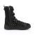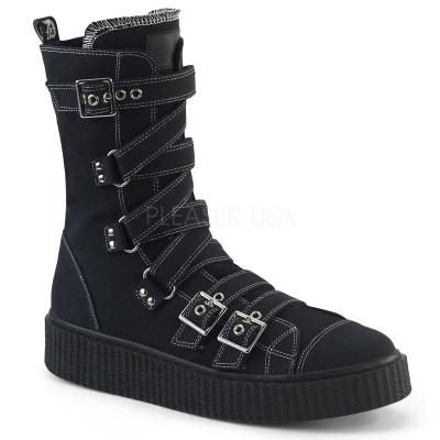 1 1/2 インチ (38 mm) プラットフォーム ゴム唯一丸いつま先ふくらはぎクリーパー スニーカー起動全室ジグザグ バックルのストラップ、フロントまでトラック内の金属ファスナー(PF Round Toe Zig-Zag Buckle Calf High Creeper Sneake)