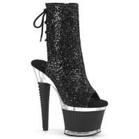 7""(178mm)ヒール、3""(76mm)テクスチャプラットフォームオープンつま先/ヒールレースアップバックアンクルブーツw/隠しジップポケット、インサイドジップクロージャー