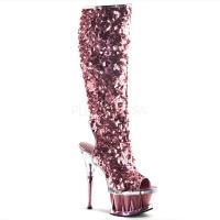 つま先/バック スパンコールひざのトランクリッドにサメ歯スパイク、内側 Zip を開く(PF Open Toe/Back Sequins Knee Boot)